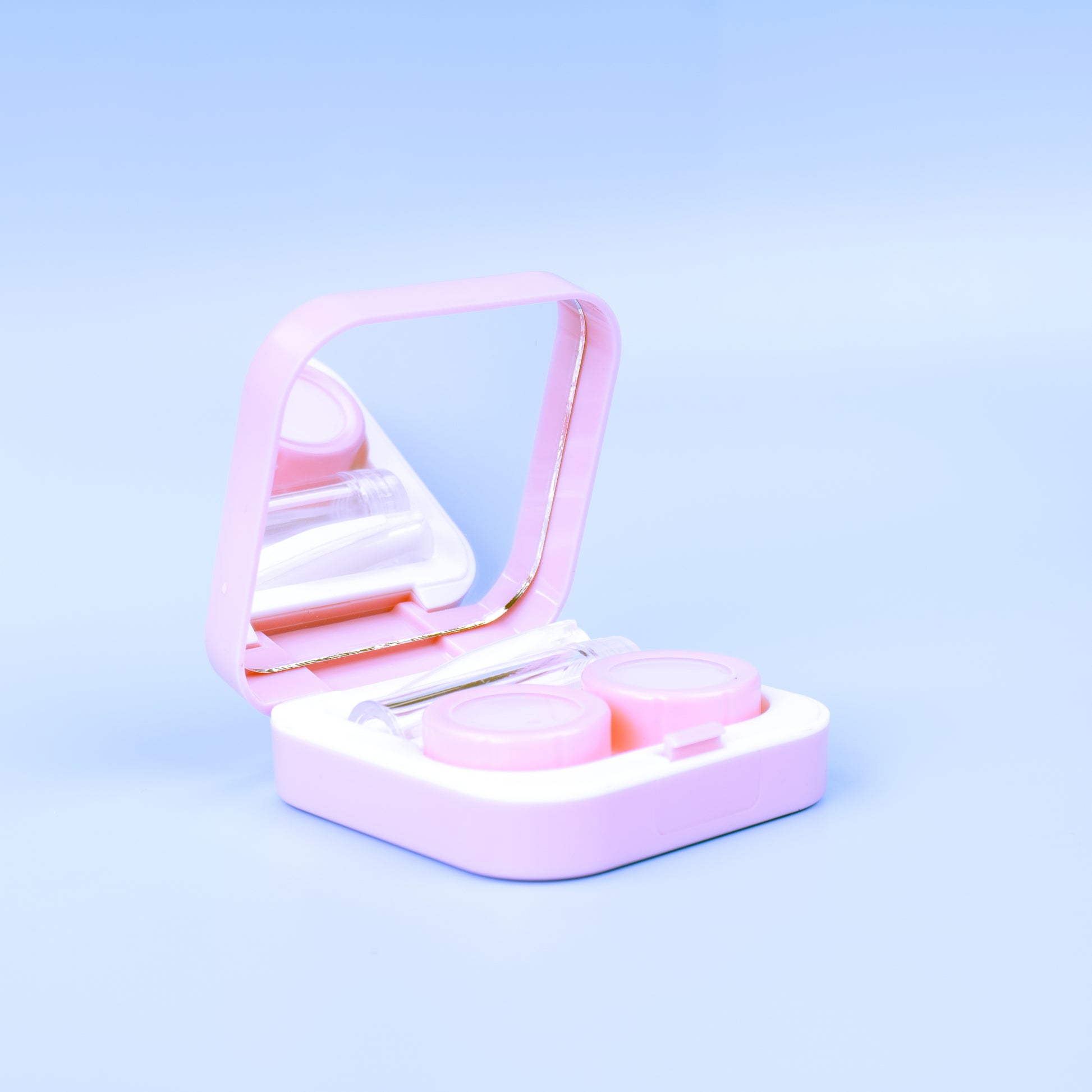 This pink contact lens care case is designed with a built-in mirror to make lens insertion and removal easier, anytime and anywhere. Whether you’re at home, in the car, or traveling, the mirror offers quick visibility when you need it most—no extra tools required.